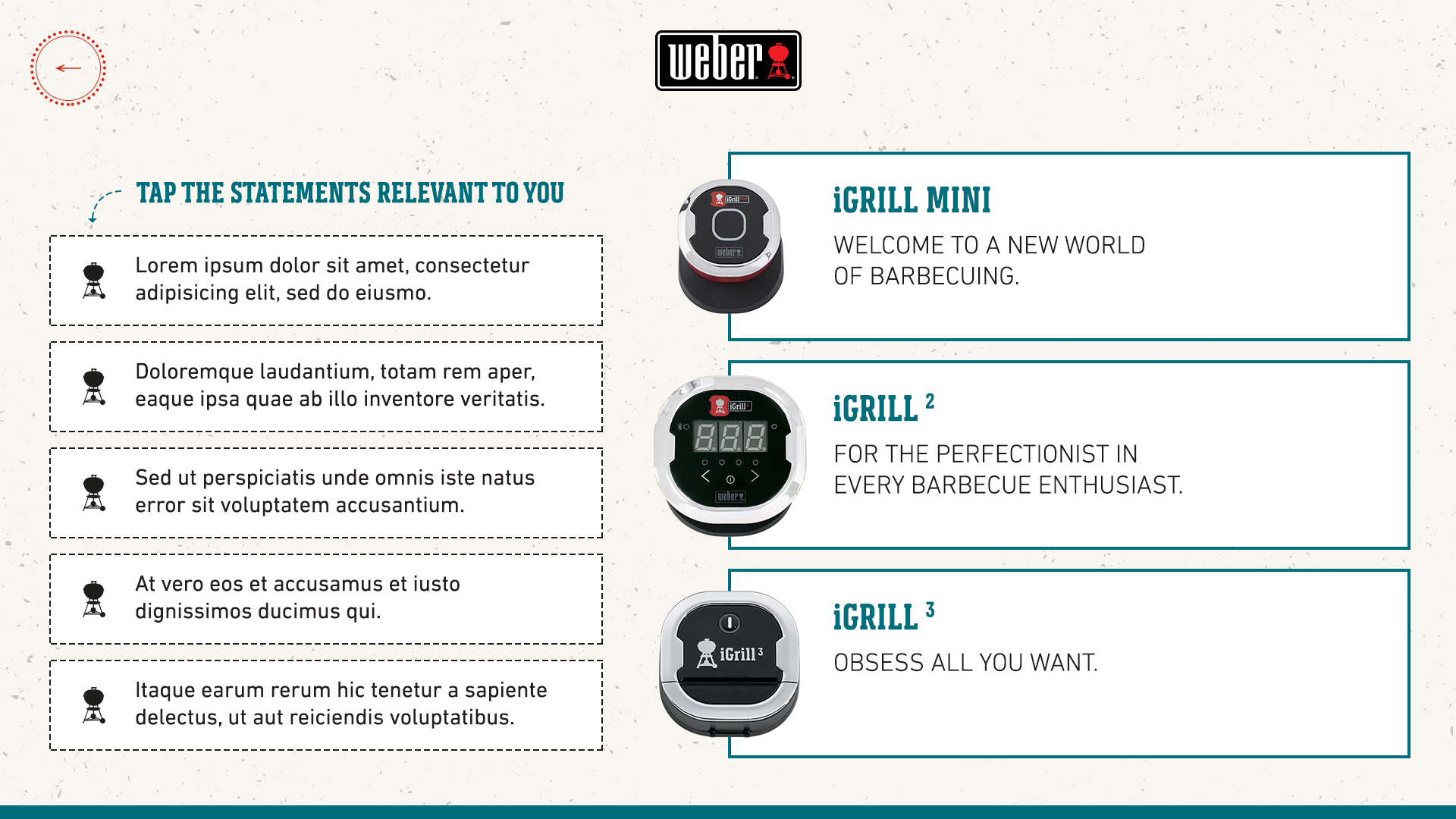 The demo accurately captured the rustic, traditional BBQ feel that Weber has established in their brand. The use of the background patterns and the slab-serif font really helps with this.